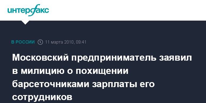 Московский предприниматель заявил в милицию о похищении барсеточниками зарплаты его сотрудников