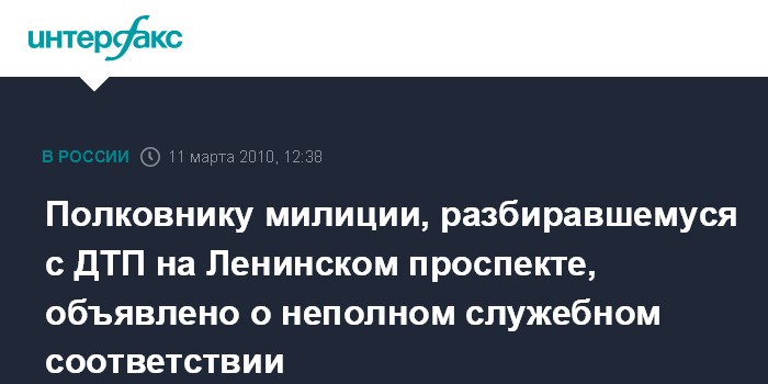 Полковнику милиции, разбиравшемуся с ДТП на Ленинском проспекте, объявлено о неполном служебном соответствии