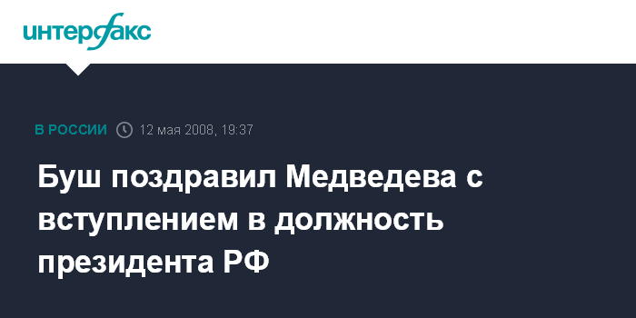 Буш поздравил Медведева с вступлением в должность президента РФ