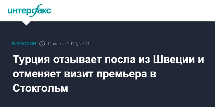 Анкара. 11 марта. ИНТЕРФАКС - Анкара решила отозвать своего посла из шведской столицы и отменить запланированный на 17 марта визит премьер-министра Реджепа Тайипа Эрдогана в Стокгольм, сообщают в четверг местные СМИ, ссылаясь на заявление аппарата главы турецкого правительства.