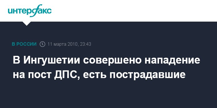 Как сообщили агентству "Интерфакс-Юг" в управлении СКП РФ по Ингушетии, обстрел поста произошел около 23:00 мск и продолжался около 5 минут.