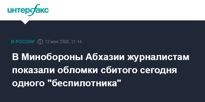 Сухуми. 12 мая. ИНТЕРФАКС - Абхазские военные продемонстрировали журналистам обломки одного из беспилотных самолетов-разведчиков, сбитых в понедельник над территорией Абхазии.