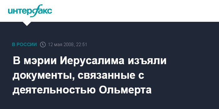 По сообщению газеты "Гаарец", полицейские конфисковали документы, связанные с деятельностью Э.Ольмерта на посту мэра города с 1993 по 2003 год.
