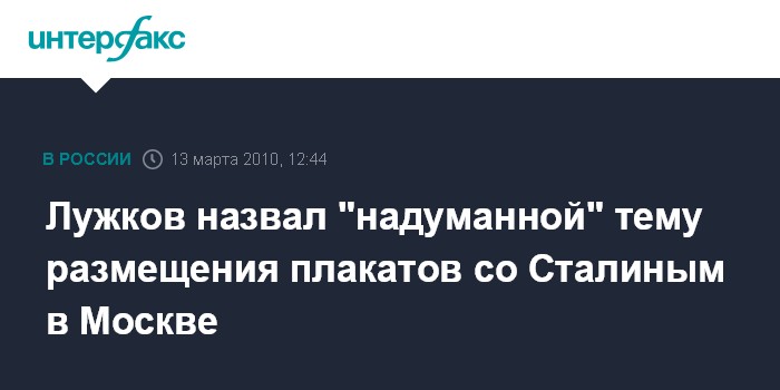 Москва. 13 марта. INTERFAX.RU - Мэр Москвы Юрий Лужков считает политическими играми шум, поднятый вокруг размещения в столице портретов Сталина в дни празднования 65-летия Победы.