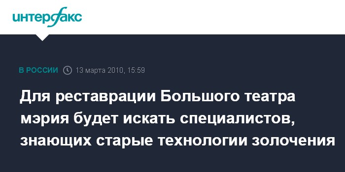 Москва. 13 марта. INTERFAX.RU - Столичные власти планируют использовать при реставрации внутренних убранств Большого театра забытые технологии золочения, сообщил мэр Москвы Юрий Лужков в ходе субботнего объезда.