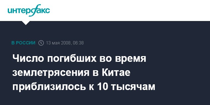 По данным на 23:00 по местному времени (19:00 мск) понедельника число погибших в результате землетрясения силой 7,8 балла в провинции Сычуань "приблизилось к 10 тысячам", сообщили местные СМИ.