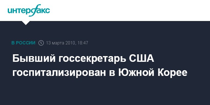 Бывший госсекретарь США госпитализирован в Южной Корее