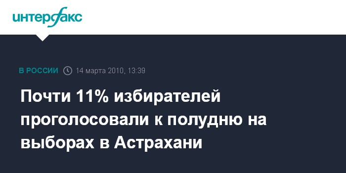 Астрахань. 14 марта. INTERFAX.RU - На выборах депутатов городской думы Астрахани по состоянию на 12:00 мск проголосовали 10,9% избирателей, сообщили "Интерфаксу" в воскресенье в областной избирательной комиссии. Как отметил собеседник агентства, существенных нарушений в ходе выборов не зафиксировано. На 35 мандатов депутатов Астраханской городской думы претендуют 145 кандидатов.