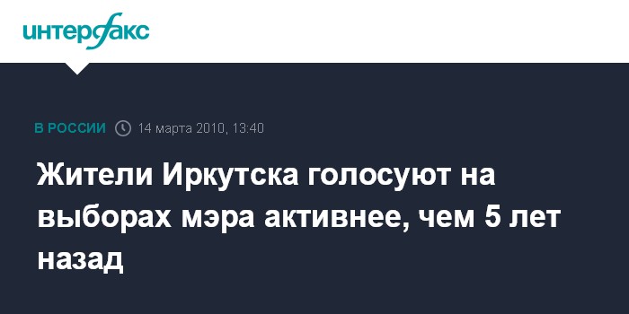 Иркутск. 14 марта. INTERFAX.RU - Явка избирателей на выборах мэра Иркутска по состоянию на 16:00 местного времени (11:00 мск) составила 23,3%, что на 5% выше явки на это время на предыдущих выборах градоначальника в 2005 году, сообщил на брифинге в воскресенье заместитель председателя облизбиркома Анатолий Тимофеев. По его словам, на 16:00 в Иркутске проголосовали 102 тыс. 969 человек. А.Тимофеев отметил, что в целом ситуация стабильная, жалоб нет.