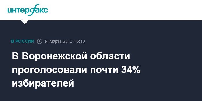 Воронеж. 14 марта. INTERFAX.RU - На выборах депутатов в Воронежскую областную думу пятого созыва по состоянию на 14:00 мск проголосовали 649,5 тыс. человек, что составляет 33,96% всех избирателей. Как сообщили "Интерфаксу" в воскресенье в Воронежском облизбиркоме, явка избирателей в этом году на 7% выше, чем на выборах депутатов облдумы в 2005 году. "Самая активная явка наблюдается в Верхнемамонском районе - 73,7%, в Аннинском - 72,8%, Новохаперском районе - 62%. Наименьшее число избирателей проголосовало в Борисоглебском районе - 25,4%, в Хохольском районе - 29,7%, в Лискинском районе - 34,3%", - пояснил собеседник агентства.