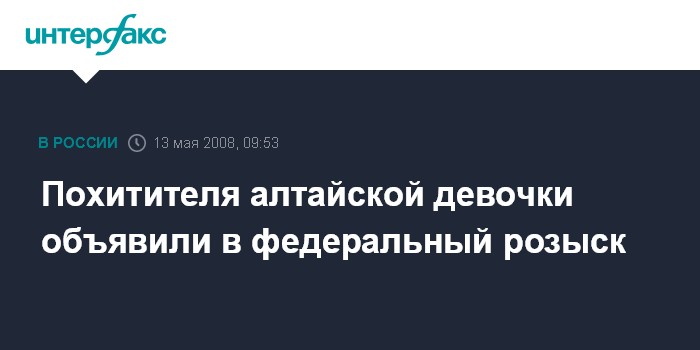 Барнаул. 13 мая. INTERFAX.RU - Александр Костырев, обвиняемый в похищении 10-летней Людмилы Палкиной, которая пропала шестого мая в Залесовском районе Алтайского края, объявлен в федеральный розыск.