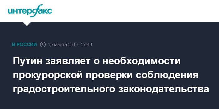 Путин заявляет о необходимости прокурорской проверки соблюдения градостроительного законодательства