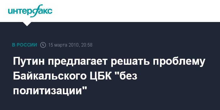 Москва. 15 марта. INTERFAX.RU - Премьер-министр РФ Владимир Путин призывает не политизировать проблему Байкальского ЦБК и решать ее комплексно.