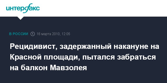 Рецидивист, задержанный накануне на Красной площади, пытался забраться на балкон Мавзолея