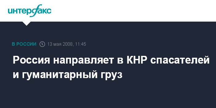 Москва. 13 мая. INTERFAX.RU - МЧС России направляет самолет со спасателями, госпиталем и гуманитарным грузом для населения Китая, пострадавшего от сильного землетрясения.