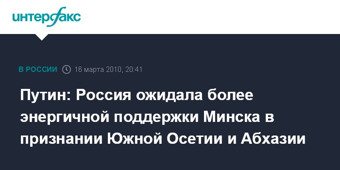 Путин: Россия ожидала более энергичной поддержки Минска в признании Южной Осетии и Абхазии