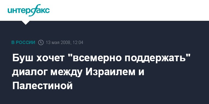 Перед отъездом в интервью израильской прессе Буш подтвердил стремление содействовать созданию палестинского государства с согласованными и признанными границами. По его мнению, это вполне достижимая цель.
