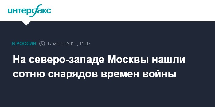 Москва. 17 марта. INTERFAX.RU - При прокладке теплотрассы на северо-западе столицы в среду рабочие обнаружили 99 снарядов калибра 76 мм времен Великой Отечественной войны, сообщил "Интерфаксу" источник в правоохранительных органах города. "Работы велись у дома N73 по проспекту маршала Жукова. В 14:00 были обнаружены снаряды без взрывателей", - сказал собеседник агентства. По его словам, в настоящее время место находки оцеплено, решается вопрос о том, что делать с боеприпасами.