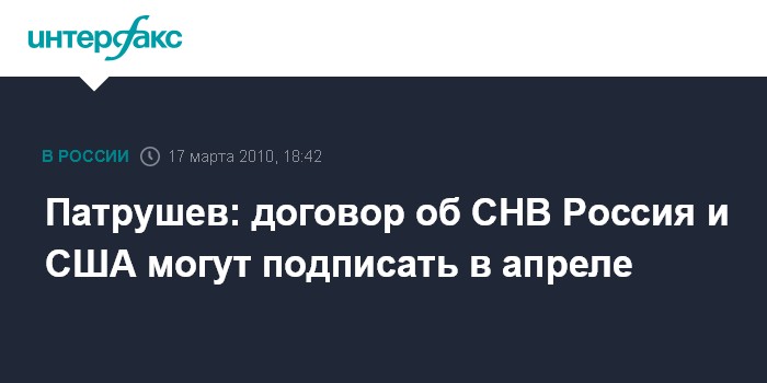 Патрушев: договор об СНВ Россия и США могут подписать в апреле