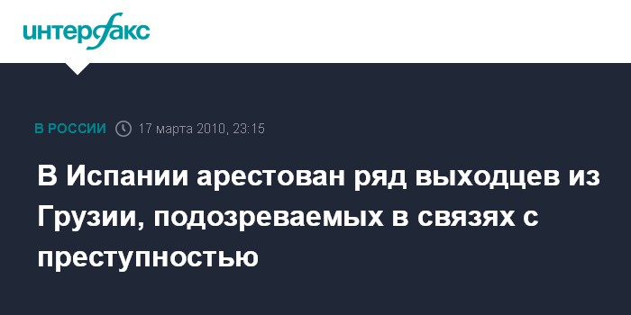 Мадрид. 17 марта. ИНТЕРФАКС - Судья Национальной судебной коллегии Испании Фернандо Гранде-Марласка в среду вынес постановление о заключении под стражу 18 из 21 выходцев из Грузии, подозреваемых в связях с организованной преступностью и арестованных в Испании в понедельник, сообщает агентство ЭФЭ.