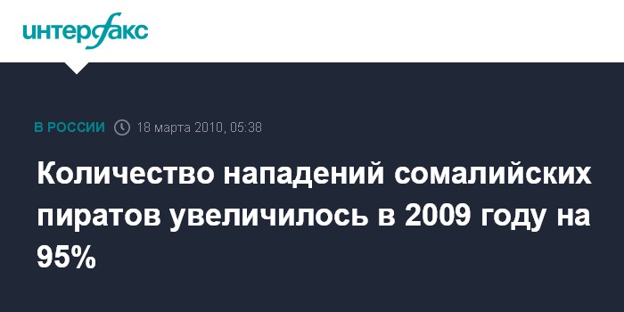 Лондон. 18 марта. ИНЕТРФАКС - Активность пиратов у побережья Сомали значительно возросла в 2009 году по сравнению с предыдущим годом.