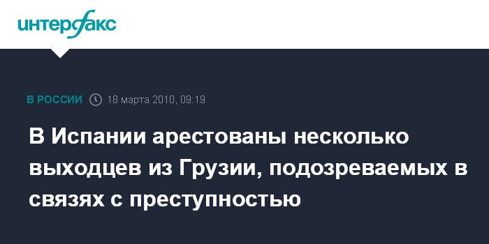 Москва. 18 марта. INTERFAX.RU – Судья Национальной судебной коллегии Испании Фернандо Гранде-Марласка в среду вынес постановление о заключении под стражу 18 из 21 выходцев из Грузии, подозреваемых в связях с организованной преступностью и арестованных в Испании в понедельник, сообщает агентство ЭФЭ.