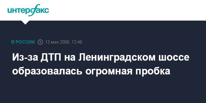 Москва. 13 мая. INTERFAX.RU - Гигантская пробка образовалась на Ленинградском шоссе в районе Химок в сторону области из-за аварии, сообщили "Интерфаксу" в правоохранительных органах Подмосковья.