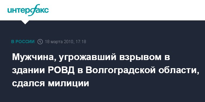 Мужчина, угрожавший взрывом в здании РОВД в Волгоградской области, сдался милиции
