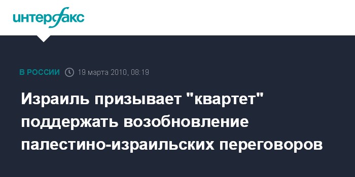 Израиль призывает "квартет" поддержать возобновление палестино-израильских переговоров