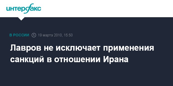 Москва. 19 марта. INTERFAX.RU - Глава МИД РФ Сергей Лавров не исключил возможности возникновения ситуации, при которой в отношении Ирана могут быть применены международные санкции. "Как сказал президент РФ Дмитрий Медведев, санкции редко когда работают, но может наступить ситуация, когда они могут оказаться неизбежными. И мы не исключаем, что такая ситуация может возникнуть в отношении Ирана", - заявил С.Лавров после встречи его и госсекретаря США Хиллари Клинтон с президентом РФ Дмитрием Медведевым.
