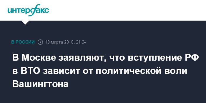 В Москве заявляют, что вступление РФ в ВТО зависит от политической воли Вашингтона
