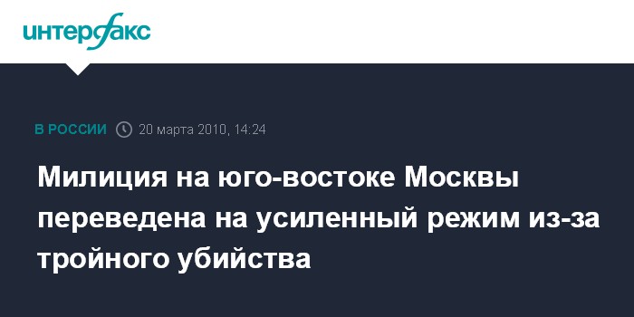 Милиция на юго-востоке Москвы переведена на усиленный режим из-за тройного убийства