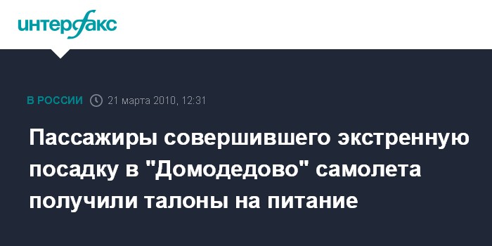 Москва. 21 марта. INTERFAX.RU - Пассажирам самолета "Авиастар-ТУ" Ульяновских авиалиний, аварийно севшего в московском "Домодедово", выдали талоны на питание и обещали отправить в Египет другим бортом.