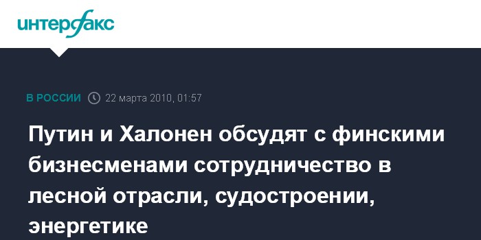 Путин и Халонен обсудят с финскими бизнесменами сотрудничество в лесной отрасли, судостроении, энергетике