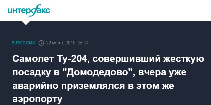 Самолет Ту-204, совершивший жесткую посадку в "Домодедово", вчера уже аварийно приземлялся в этом же аэропорту