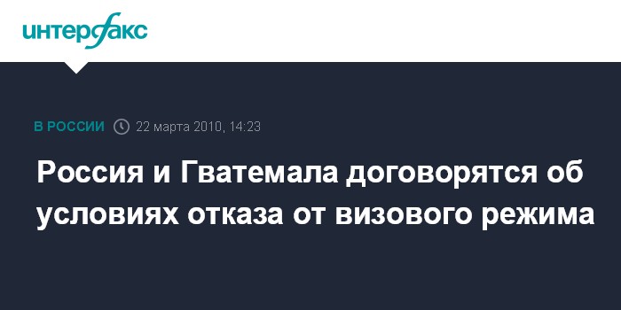 Москва. 22 марта. INTERFAX.RU - Президенты России и Гватемалы Дмитрий Медведев и Альваро Колом Кабальерос дали поручение завершить в ближайшее время подготовку к подписанию межправительственного соглашения об условиях отказа от визовых формальностей.