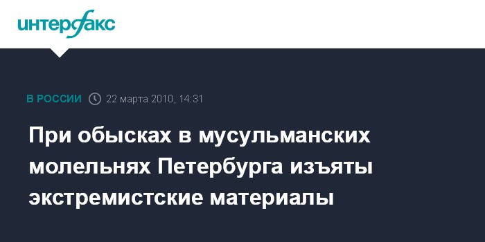 Санкт-Петербург. 22 марта. INTERFAX.RU - Правоохранительные органы Петербурга изъяли большое количество экстремистских материалов в результате обысков в мусульманских религиозных организациях в прошлую пятницу, задержан один человек, сообщил сайт Следственного управления СКП РФ по городу в понедельник.