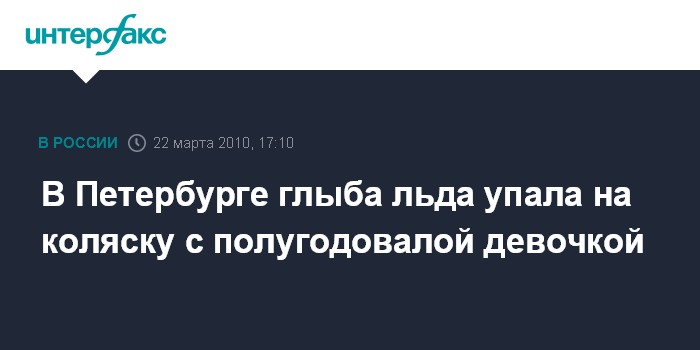 В воскресенье на улице Савушкина глыба льда упала на детскую коляску, в которой лежала 6-месячная девочка. Ребенка доставили в детскую больницу им. Святой Марии Магдалины в состоянии средней степени тяжести.