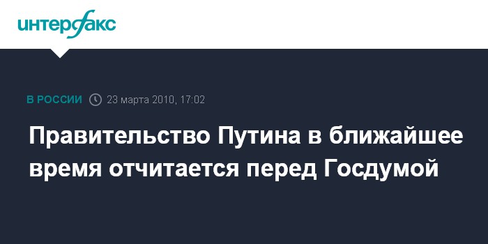 Москва. 23 марта. INTERFAX.RU - Отчет правительства перед Государственной думой состоится в ближайшее время, сообщил премьер-министр РФ Владимир Путин.