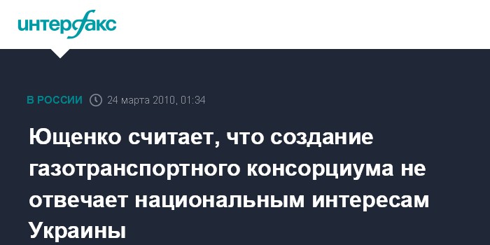 Киев. 24 марта. ИНТЕРФАКС-УКРАИНА - Создание газотранспортного консорциума не отвечает национальным интересам Украины, считает экс-президент Украины Виктор Ющенко.