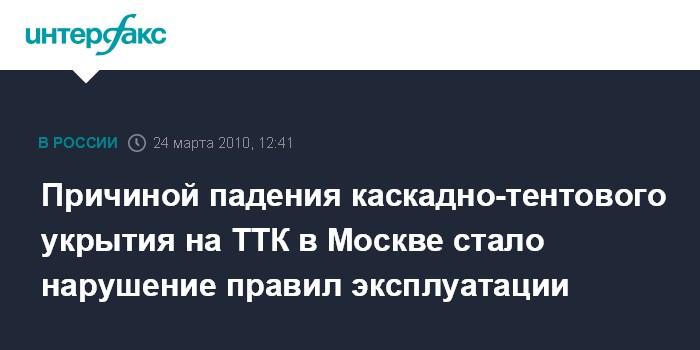 Причиной падения каскадно-тентового укрытия на ТТК в Москве стало нарушение правил эксплуатации