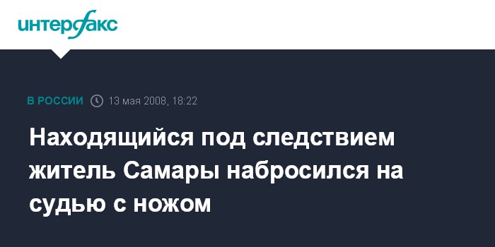 Самара. 13 мая. INTERFAX.RU - Куйбышевский межрайонный следственный отдел Следственного управления СКП РФ по Самарской области возбудил уголовное дело в отношении безработного Александра Матвеева, набросившегося с ножом на судью.