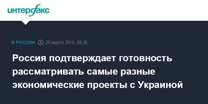 Россия подтверждает готовность рассматривать самые разные экономические проекты с Украиной
