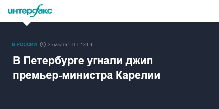 Москва. 25 марта. INTERFAX.RU - В Петербурге неизвестные угнали джип, принадлежащий хозяйственному управлению при администрации главы Республики Карелия, сообщил "Интерфаксу" источник в правоохранительных органах города. По его словам, в милицию с заявлением об угоне автомобиля "Тойота Ленд Крузер-200" накануне обратился водитель хозяйственного управления.