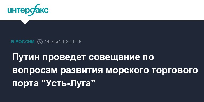 Путин проведет совещание по вопросам развития морского торгового порта "Усть-Луга"