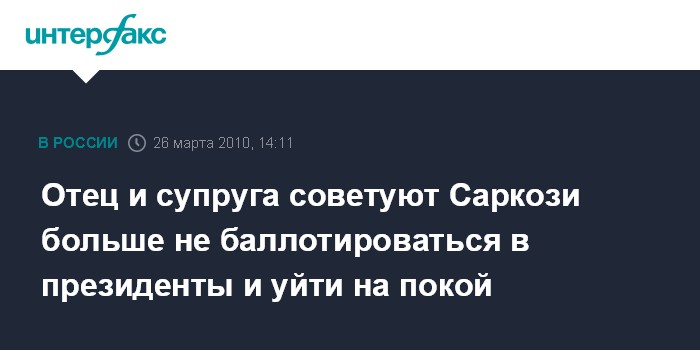 Отец и супруга советуют Саркози больше не баллотироваться в президенты и уйти на покой