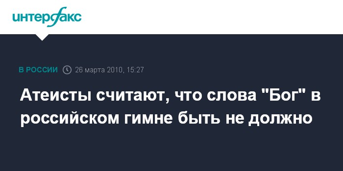 Атеисты считают, что слова "Бог" в российском гимне быть не должно