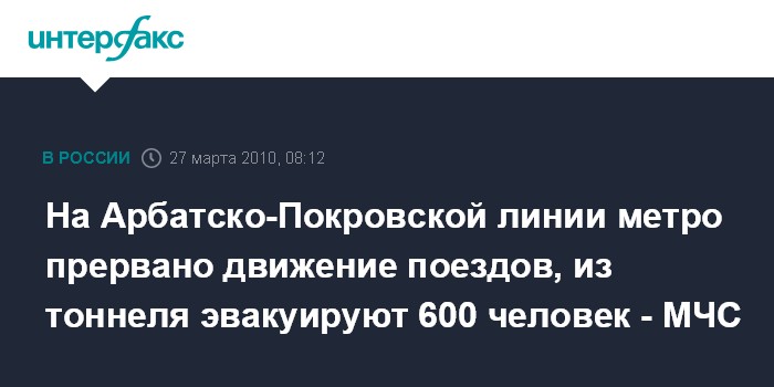 На Арбатско-Покровской линии метро прервано движение поездов, из тоннеля эвакуируют 600 человек - МЧС