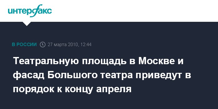 Театральную площадь в Москве и фасад Большого театра приведут в порядок к концу апреля