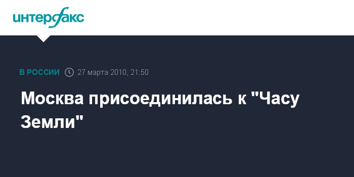 Москва. 27 марта. ИНТЕРФАКС-МОСКВА -Москва в субботу присоединилась к акции "Час Земли", проводимой 27 марта в 4 тыс. городах в 72 странах на шести континентах.